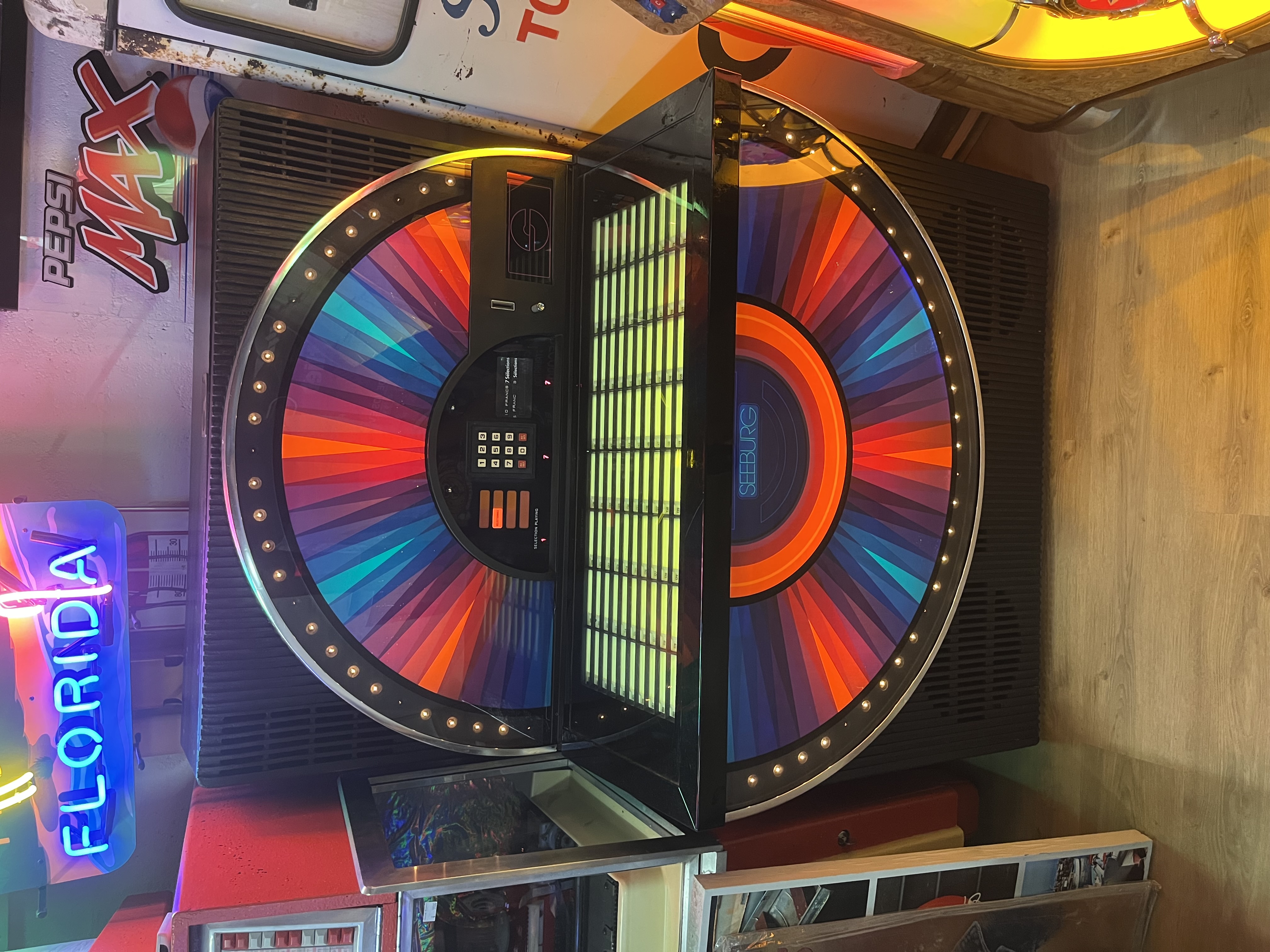 Retrouvez l’ambiance unique des 60’s autour d’un jukebox, objet exceptionnel par son esthétique, ses couleurs chaudes et changeantes, ses chromes et l’animation apportée par ses bulles. Un spectacle fascinant. FLIP 7 vous propose le charme et le magnétisme d’un juke-box et la garantie de moments inoubliables.